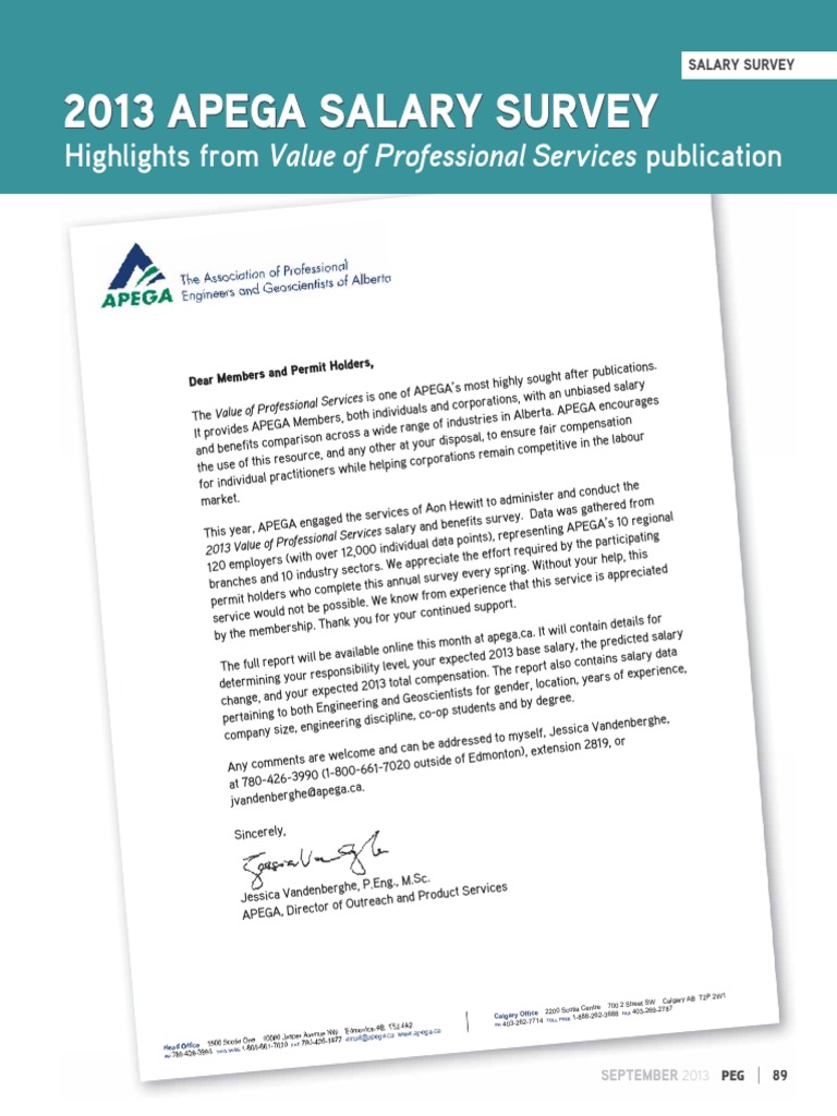 Professional services survey for apega increased by 0 50 over 2018 following decreases of 1 43 from 2016 to 2017 and a further decrease of 0 75 between 2017 and 2018. The survey is now closed and participating members should have received a copy of the results. Salary survey the peg magazine epeg branch newsletters apega annual reports each spring apega produces a report of its activities statistics and finances which it submits to the alberta legislature. I make about 87k after bonuses in a low cost of living area after college with a b s.
